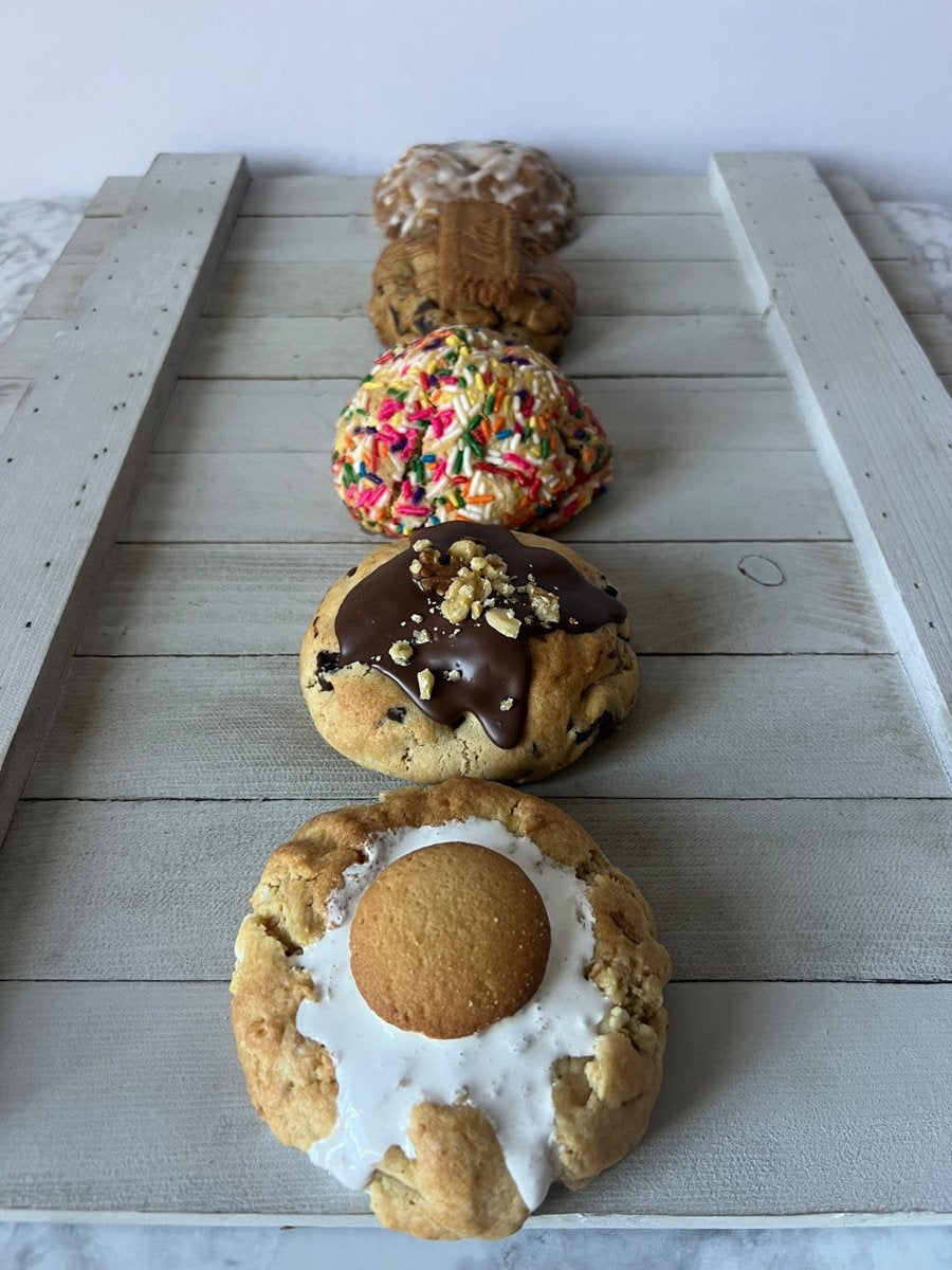 Welcome to your new favorite self-care snack stop. Each cookie is thick, gooey, and loaded with good vibes.